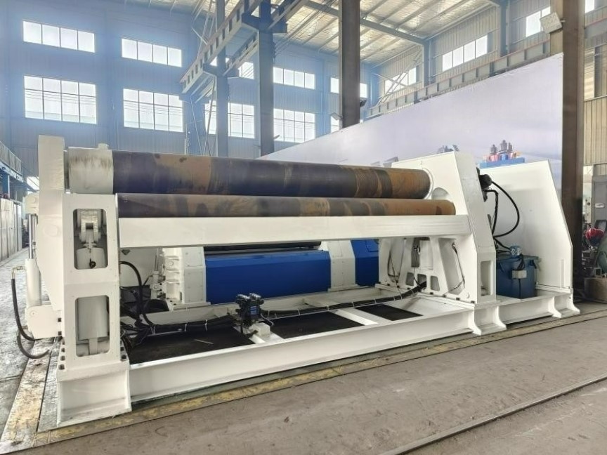 Четырехвалковый листогибочный пресс W12-6x1500 представляет собой двухзажимные листопрокатные вальцы, предназначенные для тяжелых условий эксплуатации, способные формировать листовой металл толщиной до 6 мм в цилиндры или радиусные детали. Оборудование также может прокатывать конические формы, наклоняя ролики или используя конические валы. Машина применяется в различных отраслях, включая судостроение, грузоперевозки, ветроэнергетику и строительство.