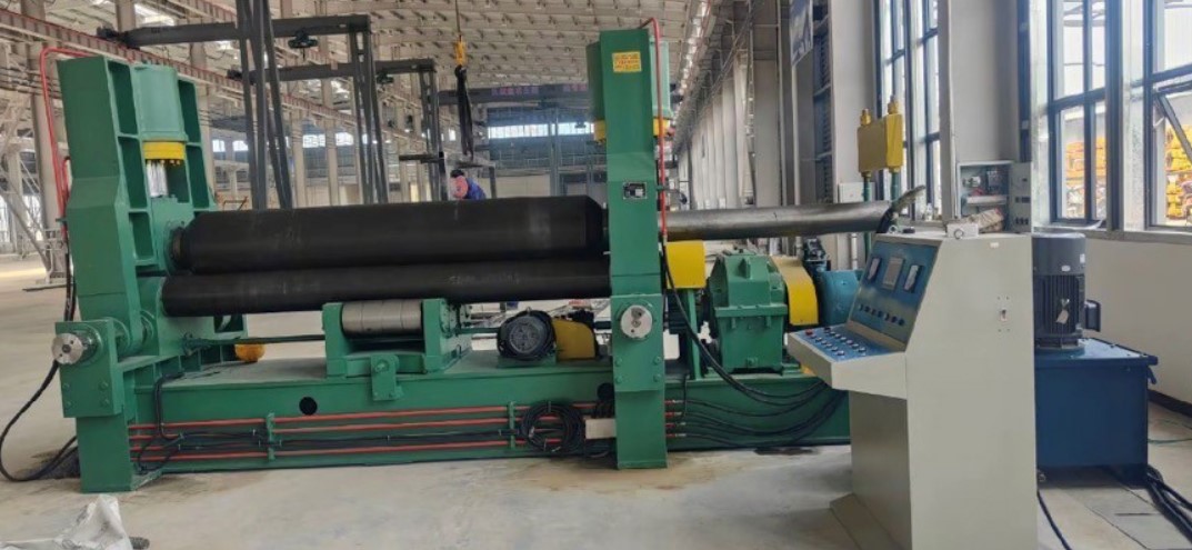 Трехвалковый листогиб W11S-16-3000 представляет собой промышленное металлообрабатывающее оборудование, предназначенное для формовки листового металла методом вальцевания. Станок относится к классу симметричных трехвалковых машин и обеспечивает получение цилиндрических, конических и спиральных изделий из листовых заготовок. Конструкция включает массивную сварную станину, три рабочих валка с индивидуальными приводами и систему гидравлического перемещения валков для настройки радиуса кривизны.