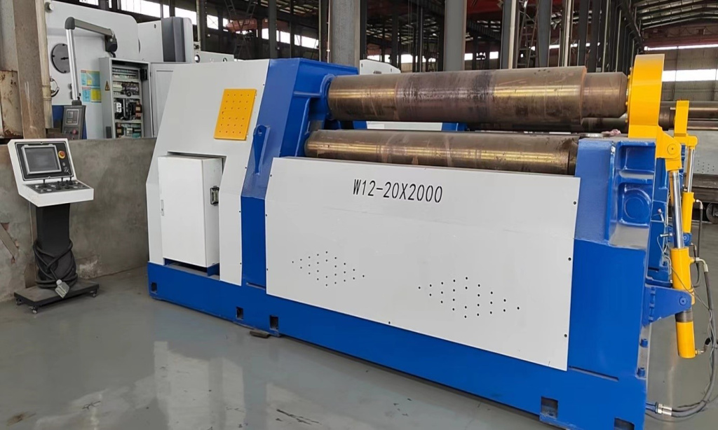 Гидравлический 4-валковый листогибочный станок с ЧПУ W12-25×2000 также не требует перепозиционирования пластины. Оператор вставляет пластину, зажимает ее, отводит назад, предварительно сгибает, а затем прокатывает за один проход.