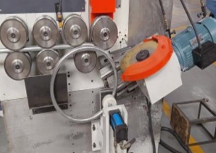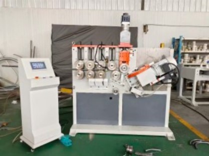 Станок для навивки колец LF-40CNC-2S представляет собой специализированную установку для изготовления кольцевых металлических элементов методом формирования из труб. Конструктивно станок состоит из двух основных модулей: рабочего блока с механизмами формообразования и системы управления с электронным интерфейсом. Рабочая зона оснащена набором формообразующих роликов, расположенных в определенной последовательности для поэтапного формирования кольцевых изделий. Механизм подачи обеспечивает равномерное поступление материала в зону обработки.