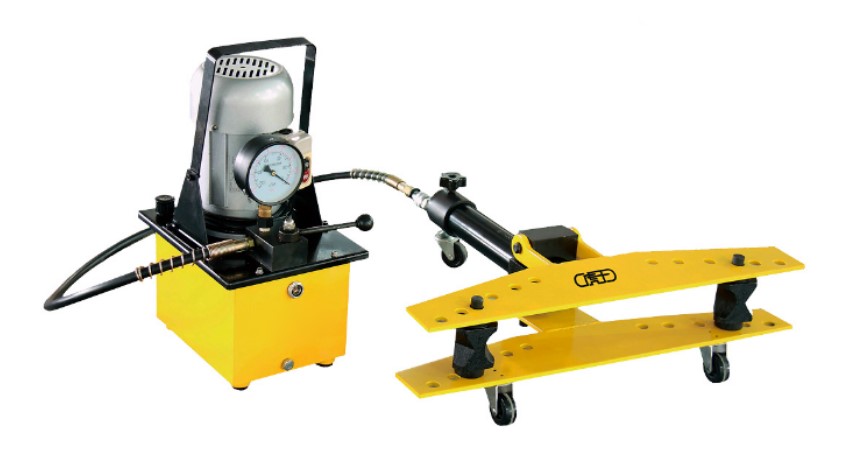 Трубогиб гидравлический с электроприводом WGD100 поставляется в ящике в комплекте с оправками и направляющими. В базовой версии изделие поставляется со щеками шарнирного типа, по запросу – щеки открытого или скользящего типа. При работе гидравлическая станция может быть легко перемещена с помощью колесиков. Штатив-тренога – опция для эргономичной работы. Более дешевый ручной привод – по запросу. Большой выбор доступных наборов штампов для круглых и квадратных труб – по запросу.