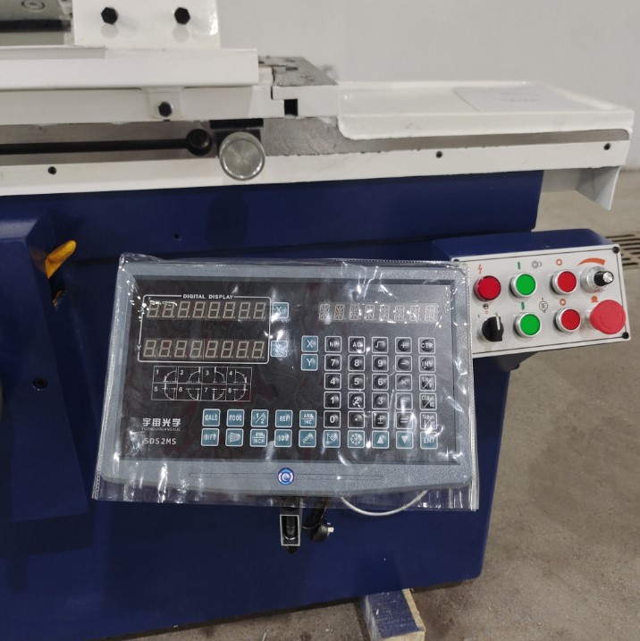 Станок круглошлифовальный M1420x500 в базовой версии оснащается кнопочным пультом подачи команд на электрические элементы и гидравлику (каждая кнопка подписана действием), смонтированным фронтально. Выделяющаяся красная кнопка обесточивания машины существенно повышает степень сохранности материальной базы станка при нештатных ситуациях. Базовый вариант позволяет управлять станком как в автоматическом, так и в ручном режиме. Если заказчик желает повысить степень точности обработки, то машина может быть укомплектована двухосевым УЦИ (Digital Display SDS2MS) с цифровым считыванием, отслеживающим координаты в реальном времени для сложных работ.