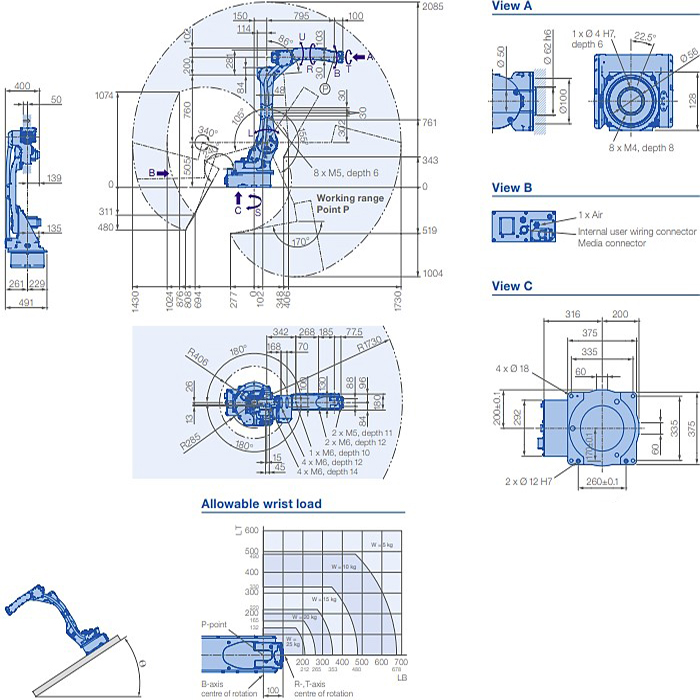 Робот-манипулятор для промышленной металлообработки AR1730 может быть установлен на полу, на стене, под наклоном или на потолке. Он управляется высокопроизводительным контроллером, созданным в соответствии с мировыми стандартами и не требующим трансформатора для входного напряжения в диапазоне от 380…480 В переменного тока. Система обеспечивает простое управление любым сварочным процессом или параметром, включая напряжение, силу тока и скорость подачи проволоки. Предусмотрен легкий подвесной пульт обучения с интуитивно понятным программированием.