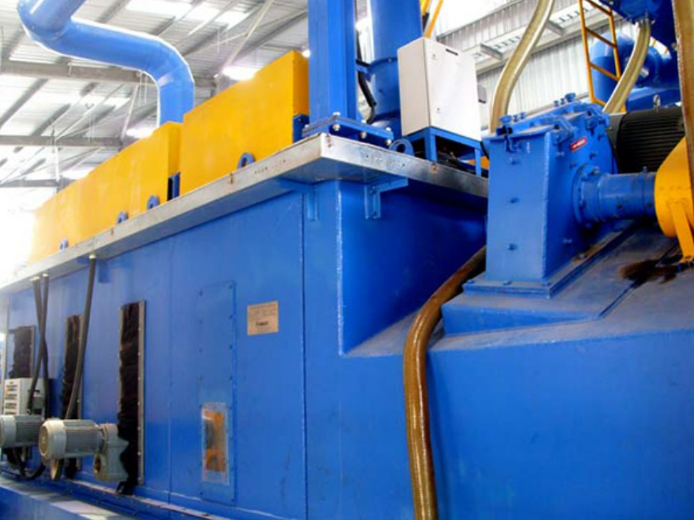 Заготовки сначала активируют порог переключения, расположенный перед входом в зону дробеструйных работ. Это автоматически высвобождает абразив в уже турбины. Это гарантирует, что взрывные работы будут происходить только тогда, когда детали действительно находятся в зоне взрывных работ. Стальная дробь, выброшенная с помощью дробеструйных турбин, будет собрана и очищена циркуляционной системой очистки, после чего снова использована турбинами. Стальная дробь собирается вертикальным шнековым конвейером и доставляется в ковшовый элеватор, после чего ковшовый элеватор поднимается в сепаратор воздушной промывки. Ржавчина и пыль, образующиеся в процессе очистки, удаляются фильтрующими картриджами.