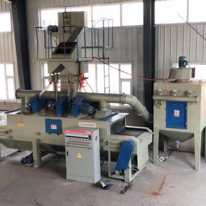 Дробеметная установка с ленточным конвейером T4-Q300 оснащается четырьмя (2 или 8 – опция) турбинами. Если установлено 4 или 8 турбин, то их можно использовать группами. Машина с низким износом благодаря полному покрытию дробеструйной камеры марганцовистой сталью. В систему дробеструйной очистки входят воздухоотделитель, сито, пылеуловитель, блок (опция) циклонной системы сбора. Скорость транспортировки деталей можно регулировать в соответствии с необходимостью с помощью преобразователя частоты. Такое оборудование легко интегрировать в существующие производственные линии.