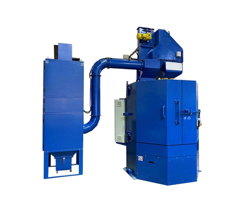 Дробеструйная машина с поворотным столом TB-RT 1600 имеет герметично запираемую во время обработки камеру. Важным компонентом станка является внутренний поворотный стол для обработки заготовки. На этом столе можно установить различные приспособления, чтобы расположить заготовки под определенным углом и, тем самым, обеспечить возможность обработки асимметричных деталей. Заготовки вручную загружаются на стол или на эти приспособления, прикрепленные к столу, перед началом работ. В процессе работы нет движения и нет контакта между частями. Вращаясь, стол всестороннее подает детали под действие струи дробеметной турбины.