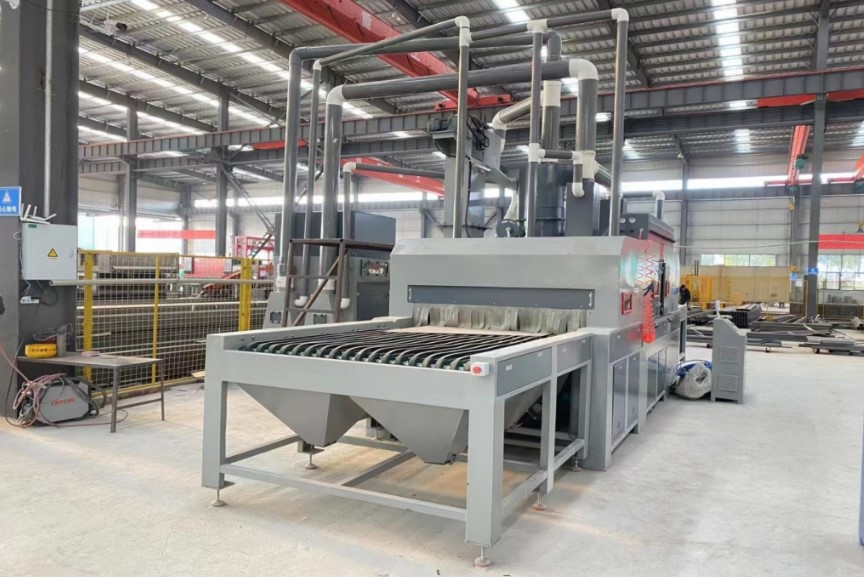 Принцип работы конвейерной дробеструйной машины XBT1600-24A основан на подаче дроби с высокой скоростью из множества пистолетов-распылителей, расположенных в камере обработки, во время продвижения заготовки на конвейере. Дробь воздействует на поверхность, механически удаляя загрязнения и дефекты, после чего система очистки отделяет абразив от пыли и посторонних включений, возвращая его в рабочий цикл. Автоматизация процессов позволяет минимизировать участие оператора, обеспечить равномерность результата и высокую производительность.