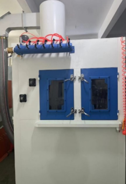 Автоматическая пескоструйная камера с поворотным столом N21416 – это профессиональное оборудование для высокоэффективной обработки различных деталей. Камера оснащена усовершенствованным поворотным механизмом с регулируемыми держателями, который обеспечивает надежную фиксацию изделий любой формы и сложности. Благодаря плавному вращению стола достигается равномерная обработка поверхности со всех сторон. Встроенная система рекуперации включает мощный циклонный сепаратор для очистки и повторного использования абразива, а также двухступенчатую систему фильтрации воздуха, что гарантирует чистоту рабочей зоны и безопасность оператора.
