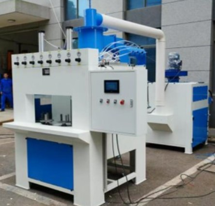 Конструкция камеры включает в себя прочный металлический корпус, внутри которого размещен поворотный стол. Этот стол обеспечивает вращение обрабатываемых изделий, которые находятся на регулируемых по диаметру держателях. Абразив подается из специального резервуара и направляется к соплам, откуда он с высокой скоростью выбрасывается на обрабатываемую поверхность. Процесс осуществляется в замкнутом пространстве камеры.