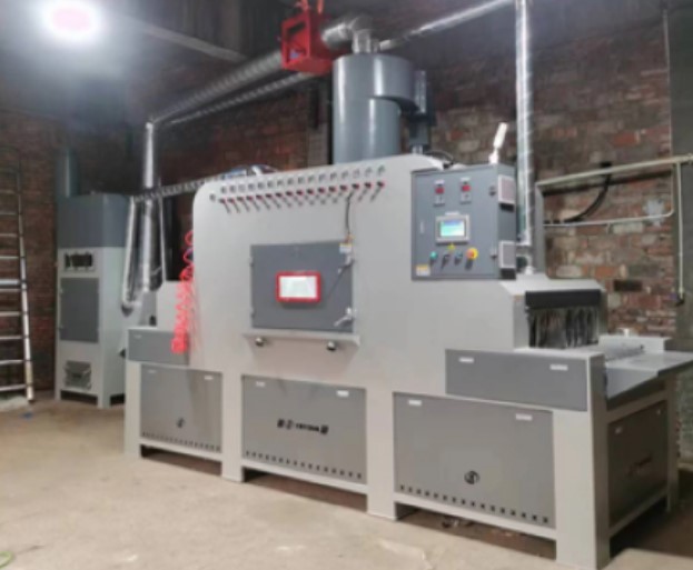 Принцип работы машины для дробеструйной обработки XBT1400-24A заключается в прохождении заготовок через рабочую камеру, где система, включающая 24 пневматических дробеструйных пистолета, подает абразив направленно под высоким давлением. Всестороннее воздействие обеспечивает равномерную очистку обрабатываемой зоны за один проход. Встроенные системы фильтрации и аспирации предупреждают образование пыли в рабочем помещении.