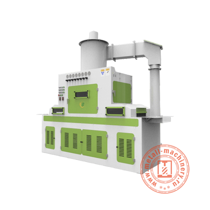 Конструкция конвейерной автоматической пескоструйной камеры ТВ-NC400-8A предполагает минимальное участие рабочего персонала в ходе производственного процесса, линия полностью автоматизирована, контроль за работой осуществляется через специальные смотровые окна, в камере установлен светодиодный прожектор. Отработанная абразивная смесь, в данном случае – песок, собирается с помощью конусной конструкции дна камеры, сепарируется и повторно используется. С тыльной стороны камеры установлены бункер для песчаной смеси, циклон и вытяжной вентилятор.