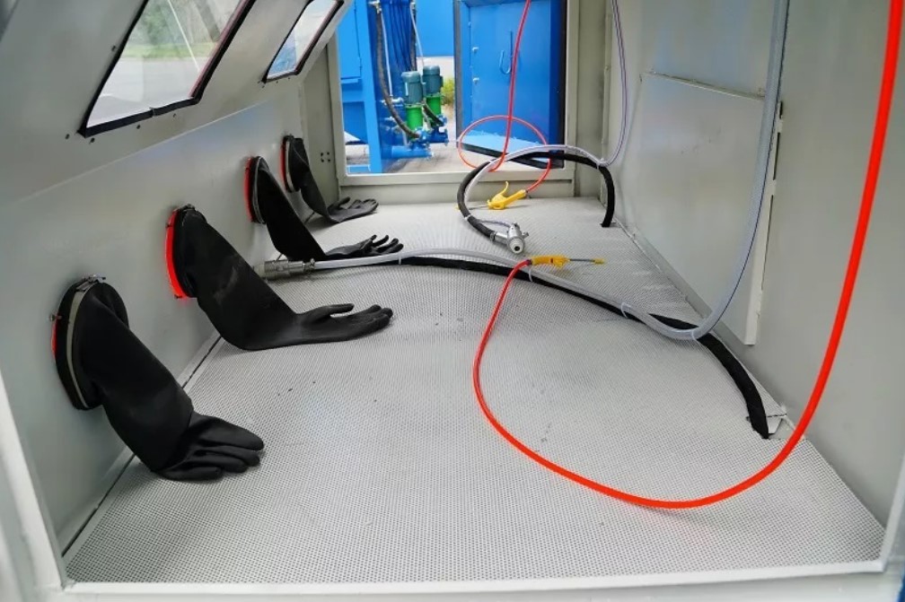 Пескоструйная камера с двумя станциями COLO-2010-2 – это машина, которая может использоваться для самых разных задач по обработке длинных деталей: обработка поверхности, очистка, удаление заусенцев или финишная обработка металла (карданные валы, бамперы), стекла или дерева. В комплекте две пары пескоструйных перчаток и два пескоструйных пистолета. Каждый из пескоструйных пистолетов также имеет собственную педаль управления.
