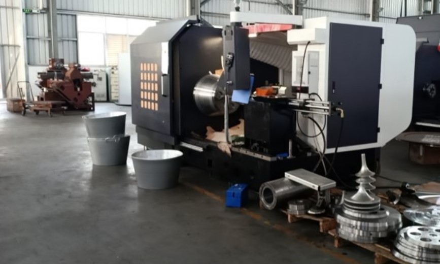 Процесс производства на станке для ротационной вытяжки металла PS-CNCSXY1850 начинается с установки заранее подготовленной металлической заготовки; диск фиксируется с помощью валов с роликами; затем происходит вращение заготовки с одновременным продольным вращением роликов, вытягивающих заготовку в нужную форму. Гидравлическая программируемая 1-уровневая задняя бабка позволяет стабилизировать положение заготовки и предотвращает ее деформацию или дребезжание в процессе обработки.