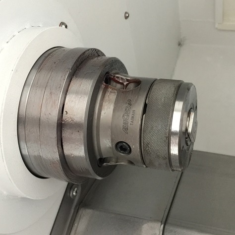 Для предлагаемой модели характерно наличие чугунной станины, которая благодаря значительной контактной площади с передней бабкой обеспечивает устойчивость установки при работе на максимальных оборотах. В передней бабке посредством гидравлической цанги на 5” или гидравлического патрона на 6” закрепляется в высокоточных подшипниках шпиндель. Скорость его вращения достигает 3000 об/мин. В качестве привода шпинделя предусмотрен электродвигатель мощностью 3 кВт.