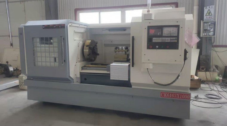 ЧПУ станок для токарной обработки СК6163x1000 имеет закаленные и шлифованные опоры и шестерни передней бабки, точные шарико-винтовые передачи, жесткие прецизионные подшипники и автоматическую принудительную смазку из централизованной масляной системы; оснащен шпинделем с бесступенчатой регулировкой скорости вращения шпинделя. Машина имеет автоматическое переключение передач передней бабки и четырехпозиционную револьверную головку с автоматической индексацией в качестве стандартного оборудования, но в зависимости от выбора клиента доступны другие револьверные головки.