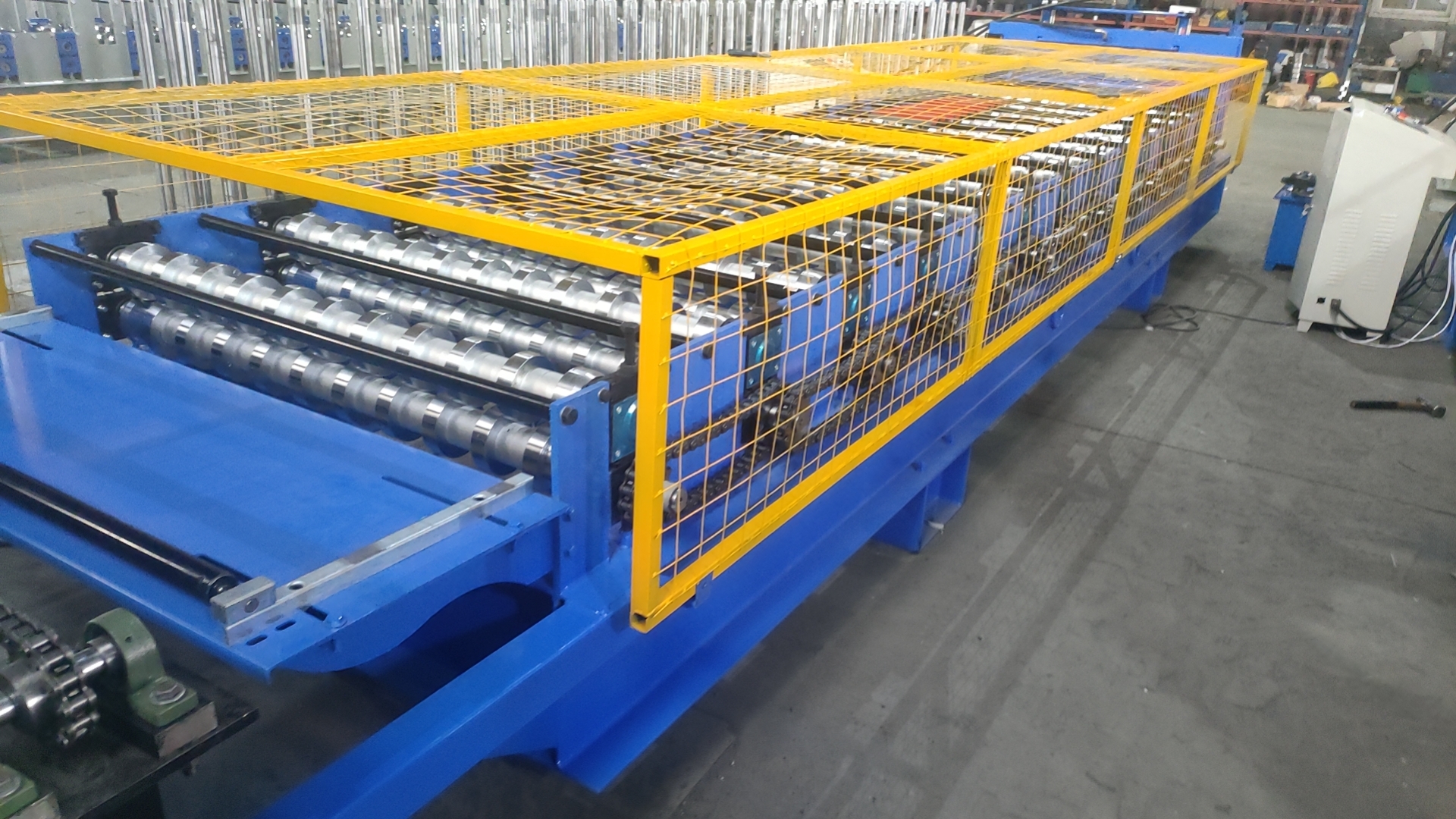 Клиент выбрал линию в экспортной комплектации с целым рядом доработок: цельнометаллическими валами, увеличенным количеством профилегибочных клетей, предварительным отрезным устройством и размотчиком с электроприводом. Эти технические особенности обеспечивают высокую точность формовки, надёжность и долговечность станка даже при интенсивных нагрузках.