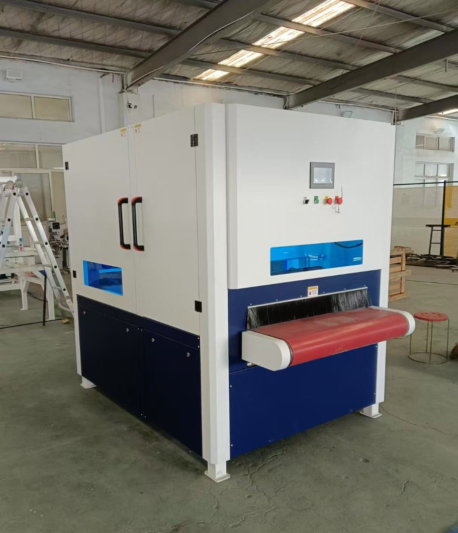 Мы поставили шлифовально-зачистной станок проходного типа DHQ-1000RR. Компоновка включает комплект широколенточных шлифовальных агрегатов и всенаправленные роликовые щётки для равномерного снятия заусенцев и сглаживания кромок по всей плоскости детали. Удержание заготовок осуществляется вакуумным столом — это гарантирует стабильную подачу даже тонких листов без смещения, а значит, предсказуемую геометрию и чистоту поверхности.